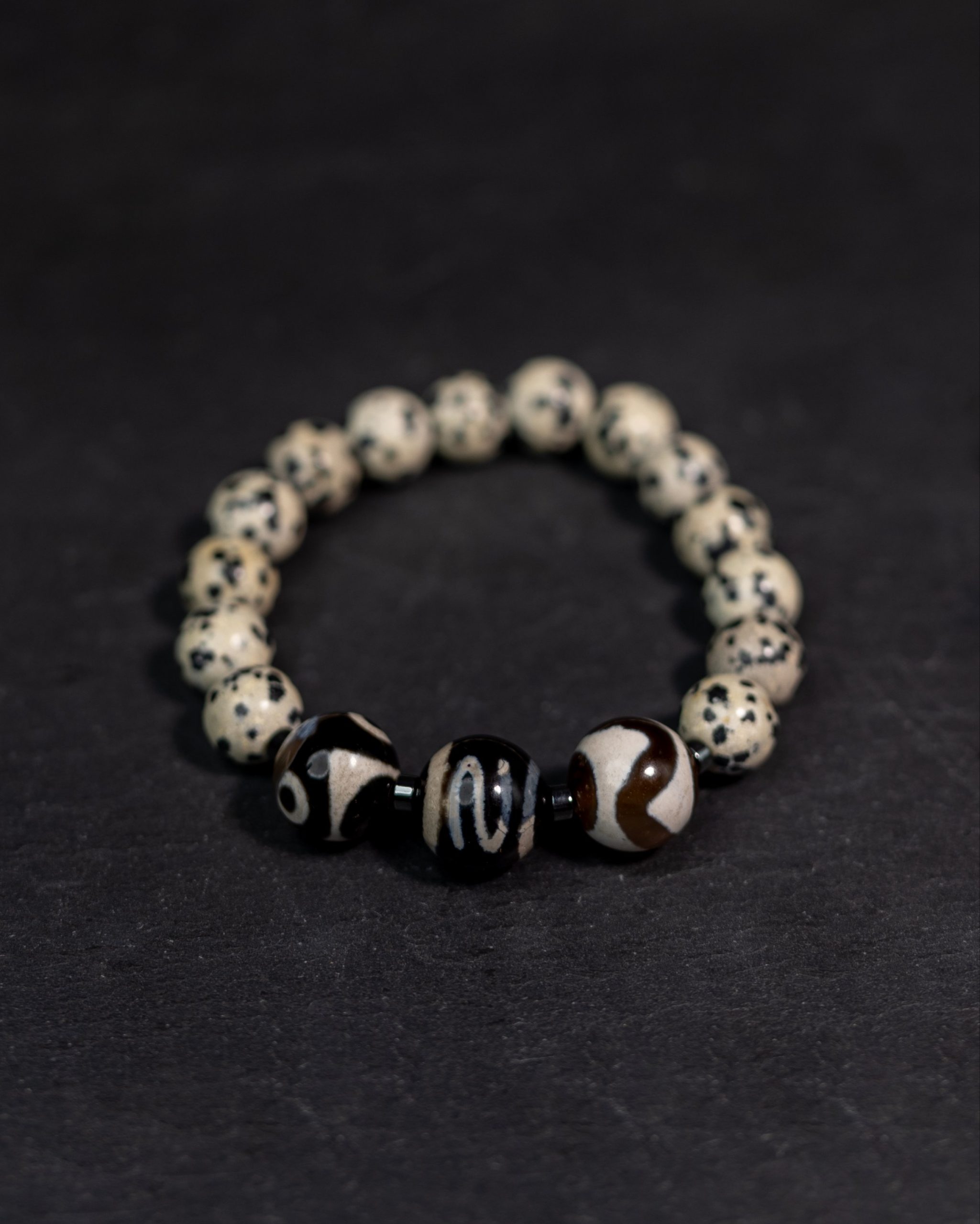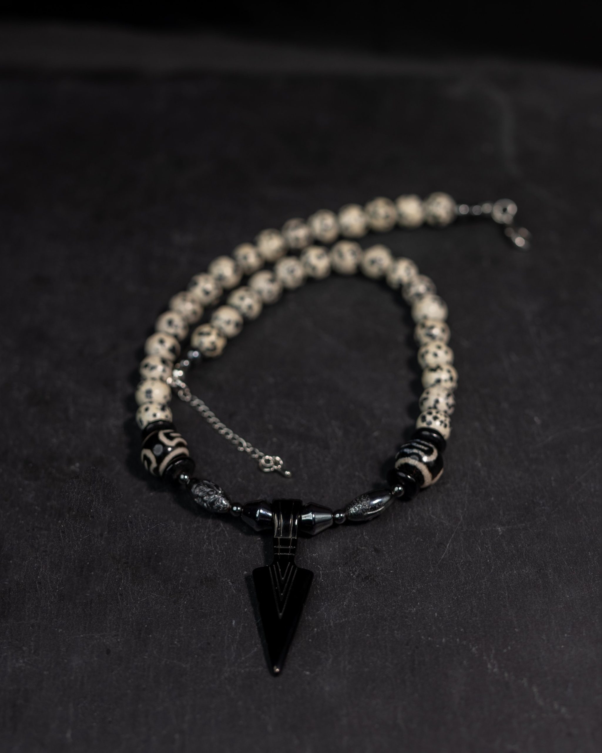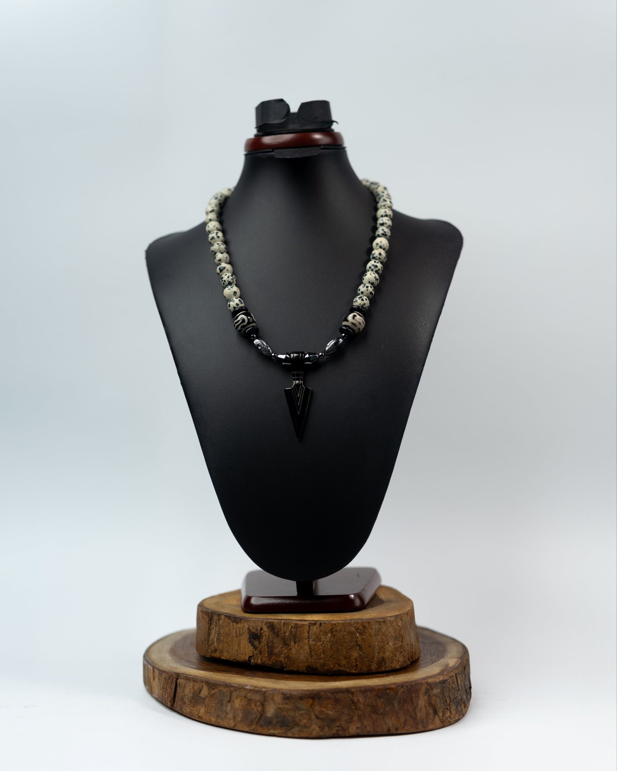 This set includes a striking Dalmatian Jasper pendant necklace paired with complementary Agate stones