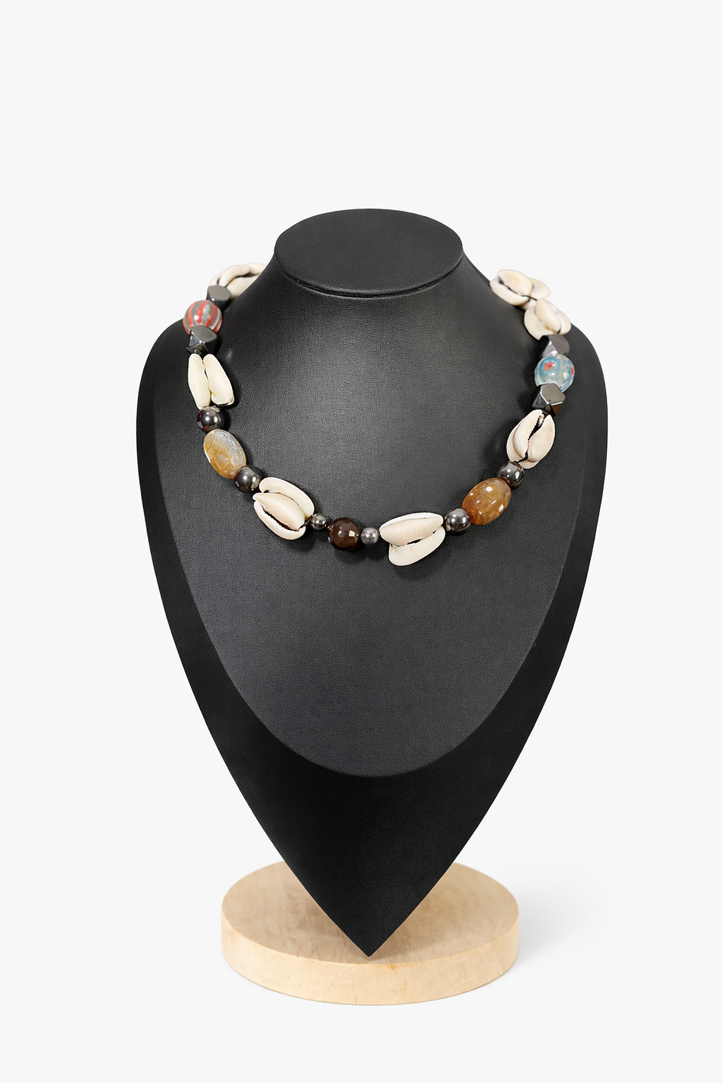 The Jabari Choker features a bold double‑sided original cowrie shell paired with rich agate gemstones. In Swahili, Jabari means “brave” or “fearless,” reflecting strength, confidence, and natural beauty.