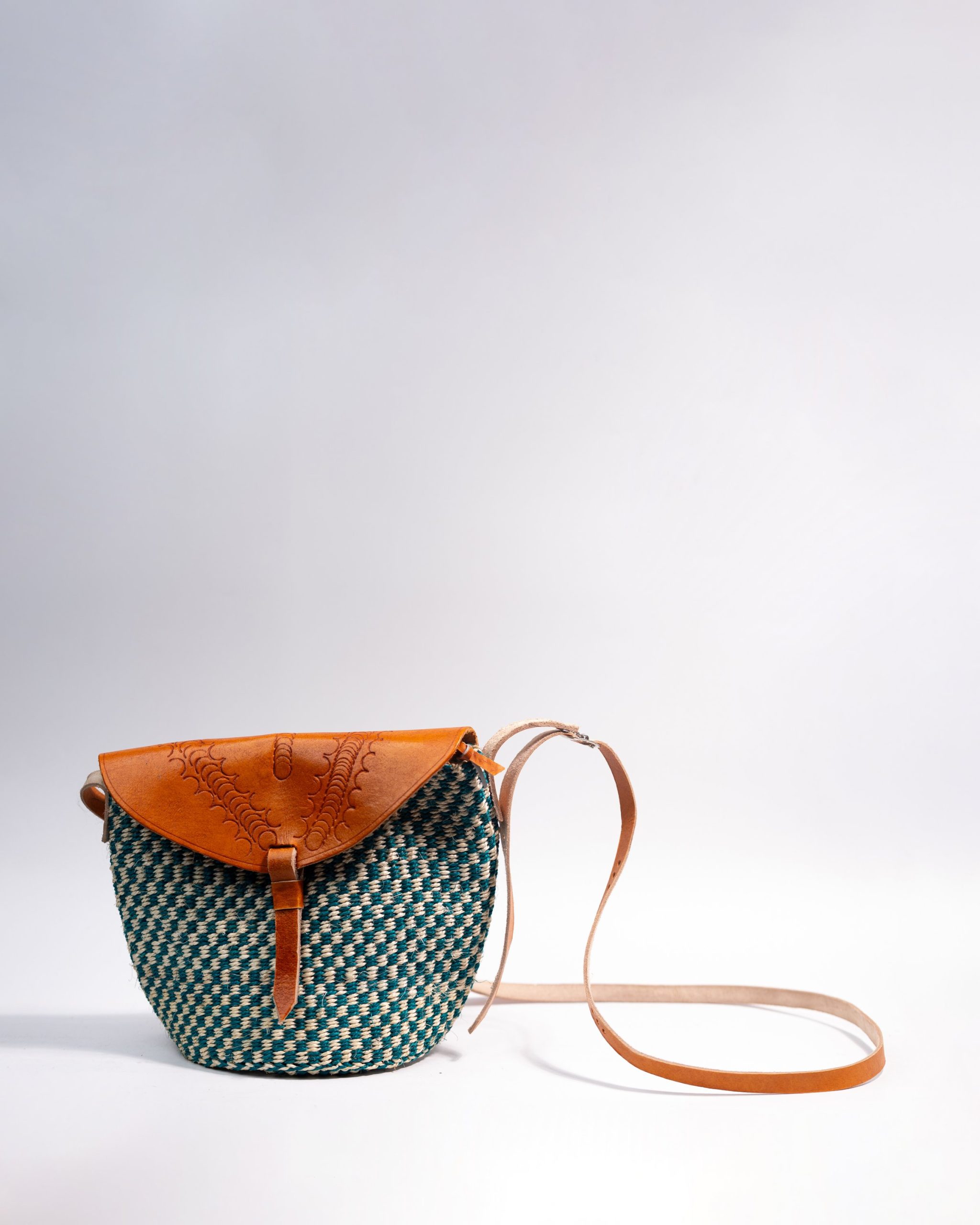 Handwoven unisex bag made from natural sisal and finished with dyed cow leather. Adjustable strap for comfort and versatility.