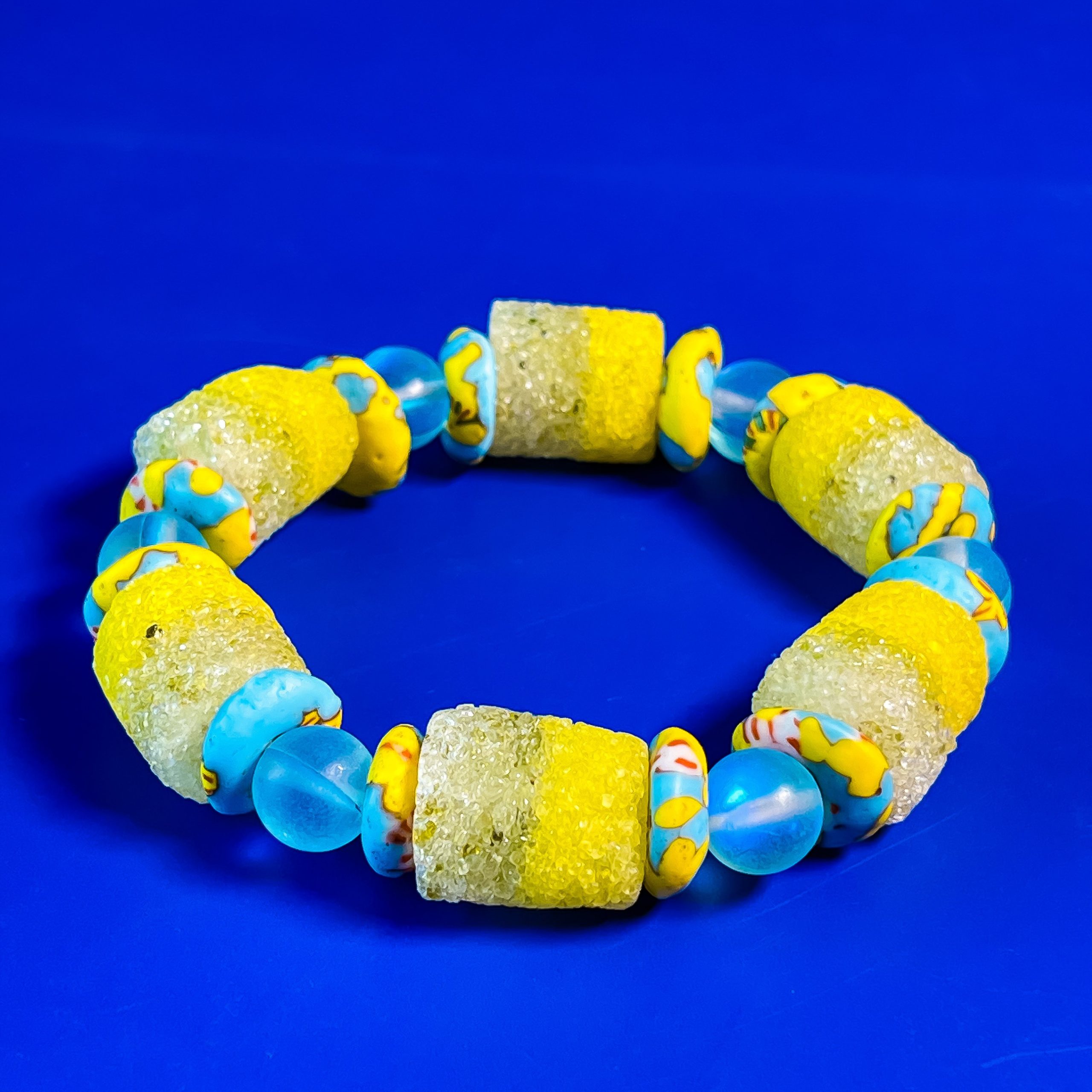 Sugar agate with gemstone and korobo disc bracelet